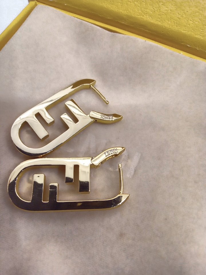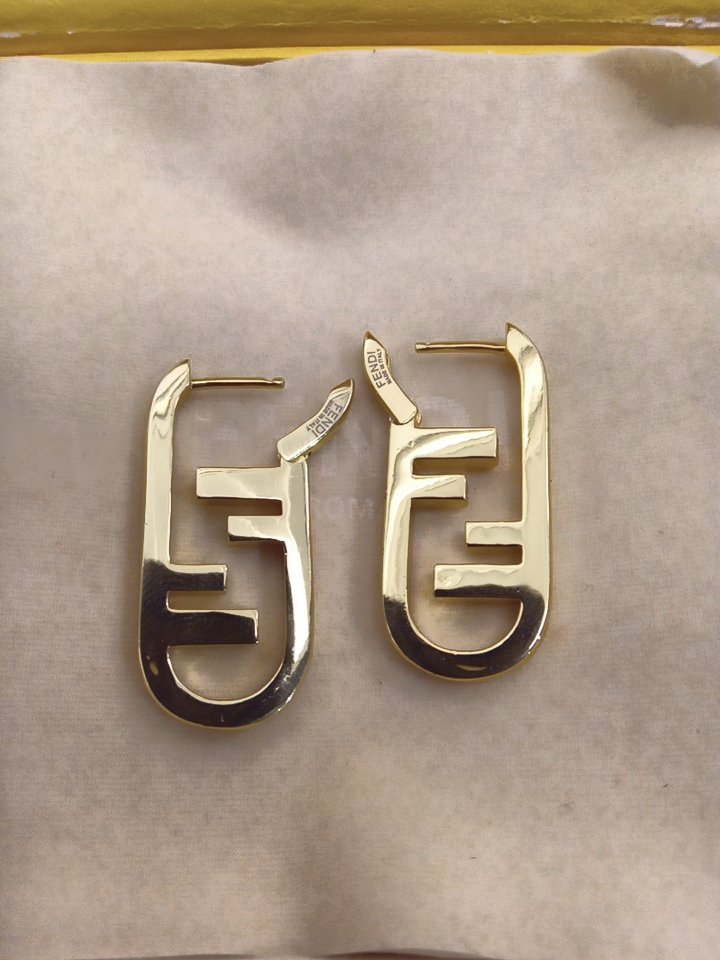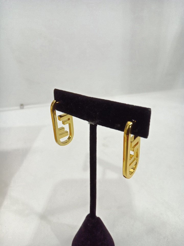 1pr womens FENDI O’Lock large oval Earrings - Made of gold-finish metal. Made in Italy
