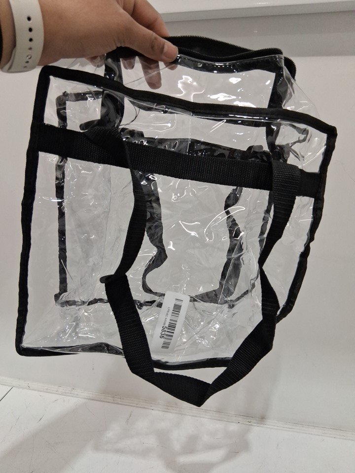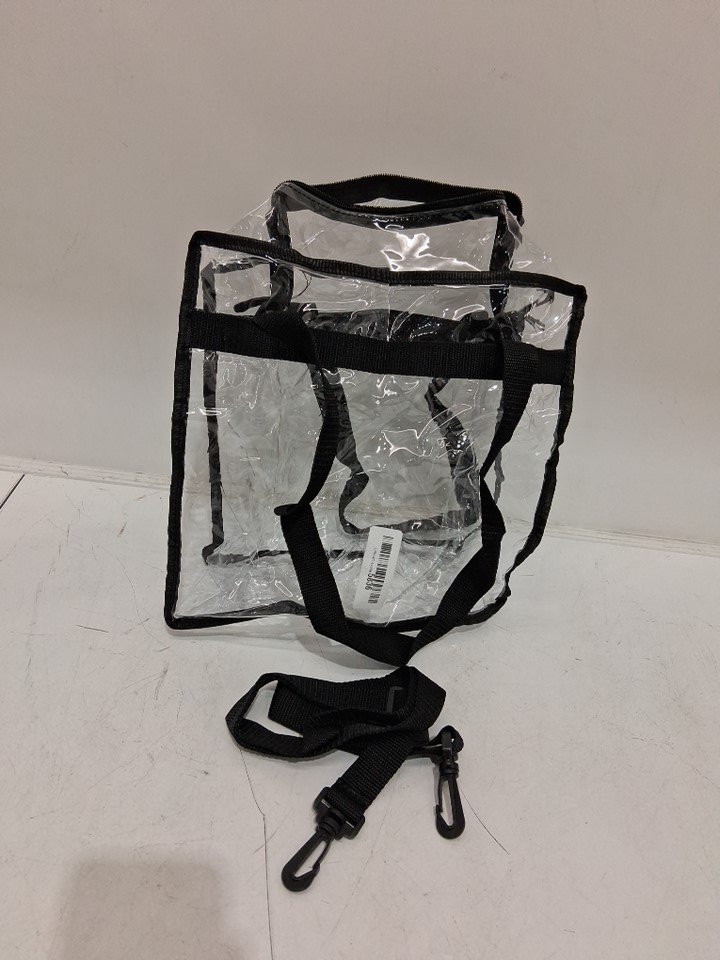 PVC TRANSPARENT TOTE BAG WITH CROSS BODY STRAP - CLEAR/BLACK