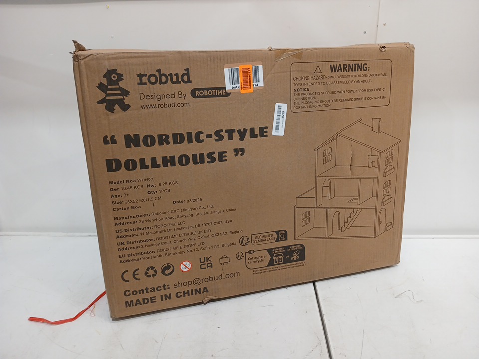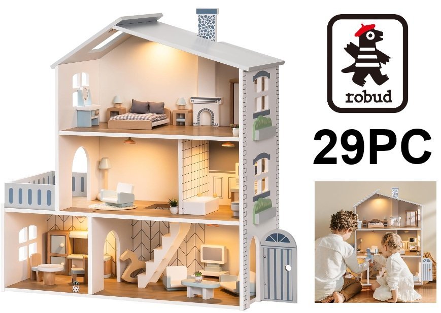 29pc ROBUD Nordic Style Wooden Dollhouse Playset with 6 Rooms & Accessories-24.5" x 10.6" x 26" -multicolored -(model:‎ RB-WDH09)