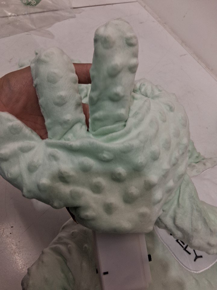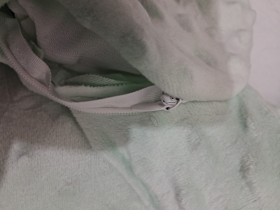 Please note the item has been tested for power and patting function. The zipper that covers the motor is stuck and does not enclose the full zip; however, this does not impact item's functionality.