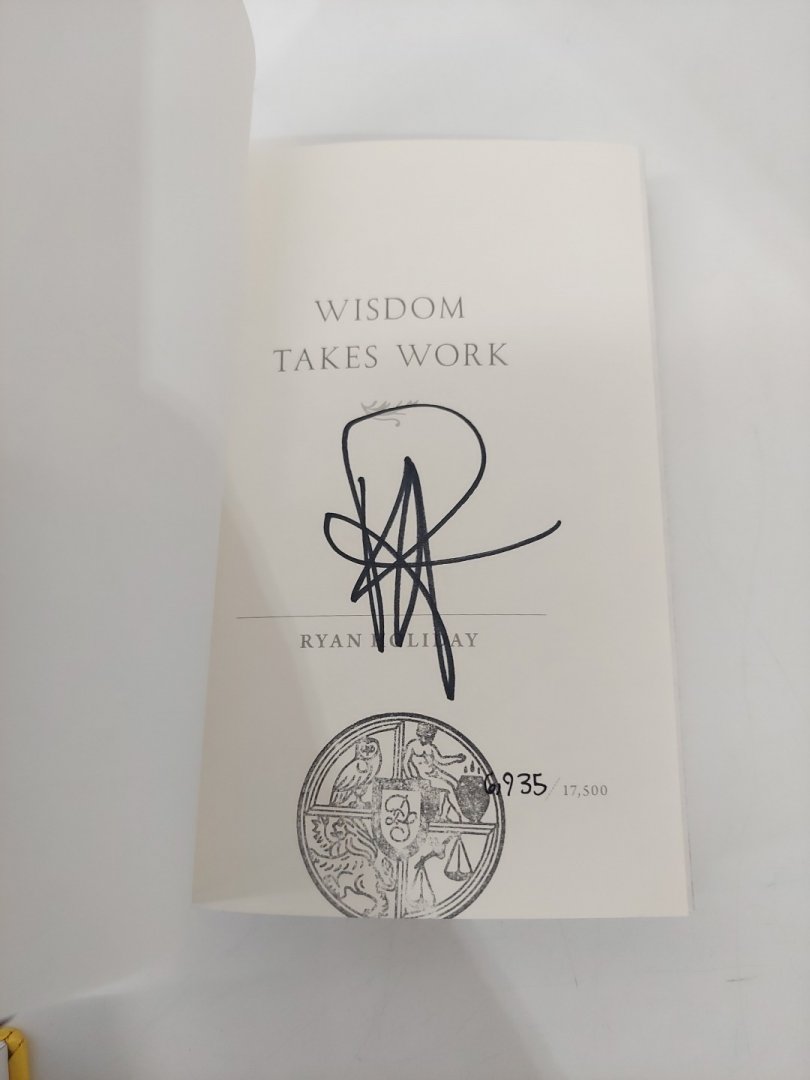(hardcover) *SIGNED* Wisdom Takes Work: Learn. Apply. Repeat. by Ryan Holiday - 6935/17500