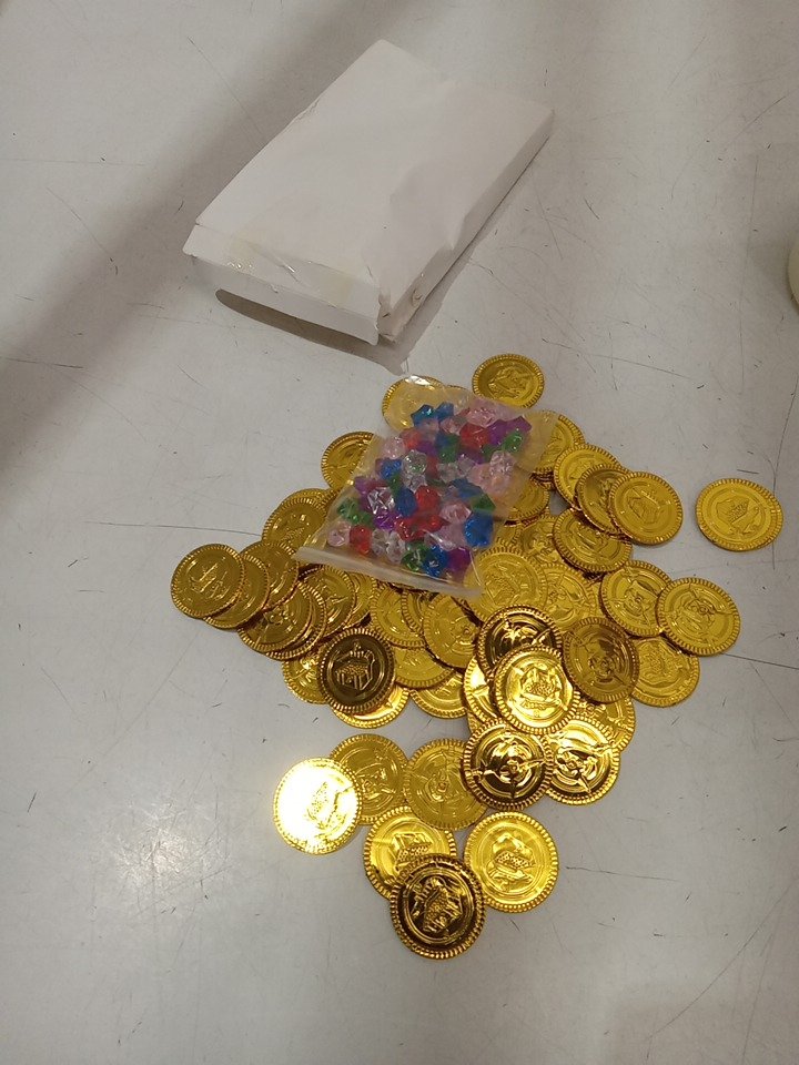50PC PIRATE treasure with faux coins and jewels for party/costume - gold/multicolour