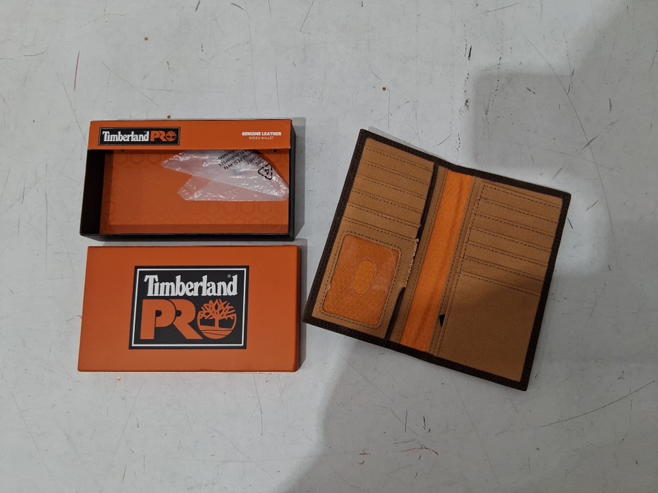 mens timberland pro leather long bifold rodeo wallet rfid,-os-dark brown