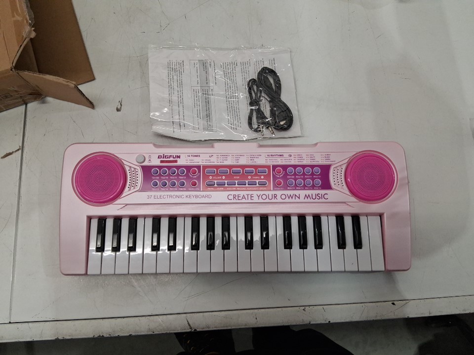 BIGFUN Portable Rechargable Kids Piano Keyboard, 37 Keys Electronic Piano with Lighted Mini-Size Keys and Microphone - PINK - (MODEL:BF-4302CL)