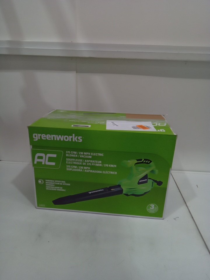 Greenworks 2-Speed Corded Electric Leaf Blower, Vacuum & Mulcher Combo - 230 MPH Air Speed - Collection Bag with Shoulder Strap Included - 12A (MODEL: 24022)