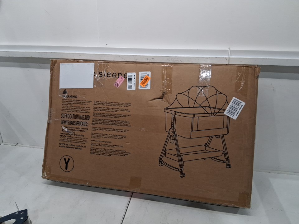Youluzhen 3-IN-1 Baby Bassinet Bedside Sleeper with Wheels and Mattress - 0-5M - GREY/Beige/brown (MODEL: M001)