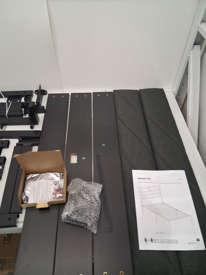 Hardware is missing, however , bed frame looks like it has not been put together