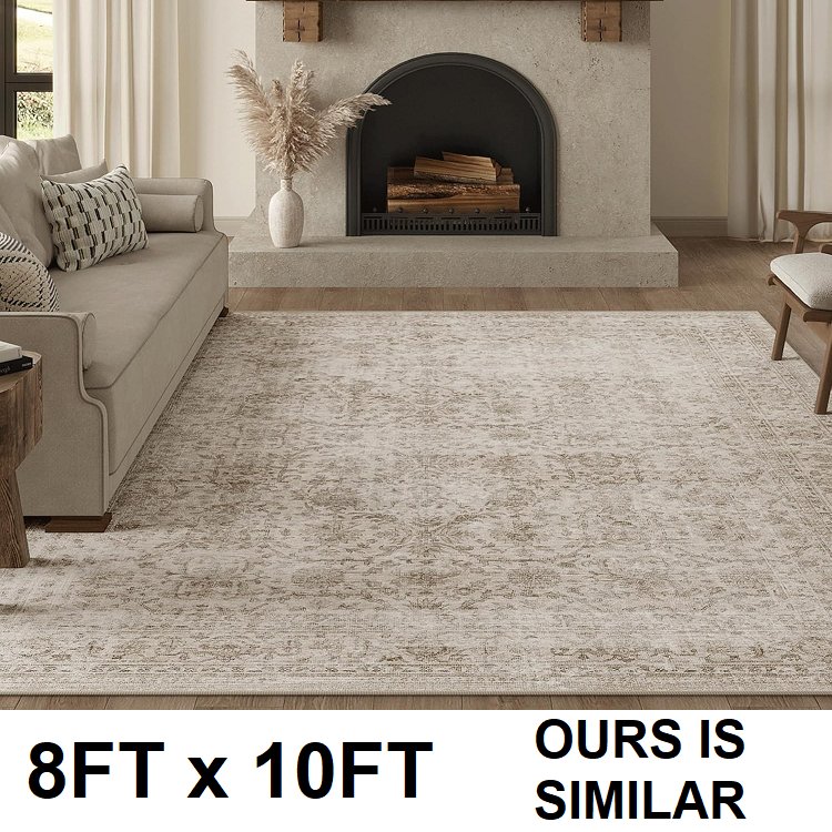 Washable vintage non slip Area Rug carpet - 8ft x 10ft, Low Pile - beige