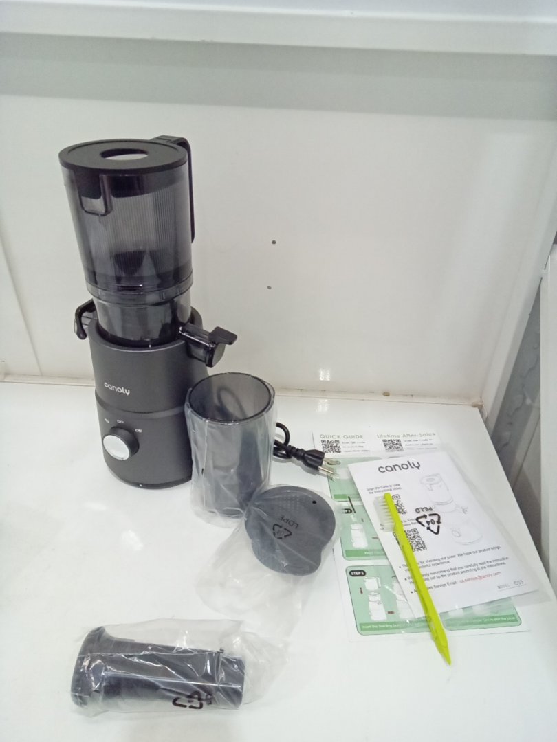 canoly slow masticating cold press juicer - 60OZ - 350W - 110 to 120V - black/grey (model: c03)