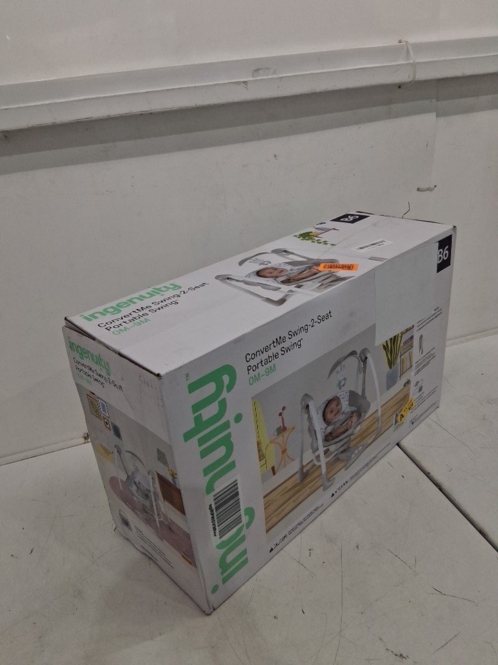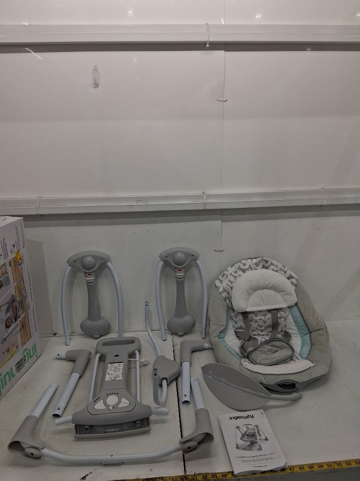 INGENUITY ConvertMe 2-in-1 compact portable plug-in automatic baby swing - 6lbs to 20lbs - grey - (model: 12189-es)