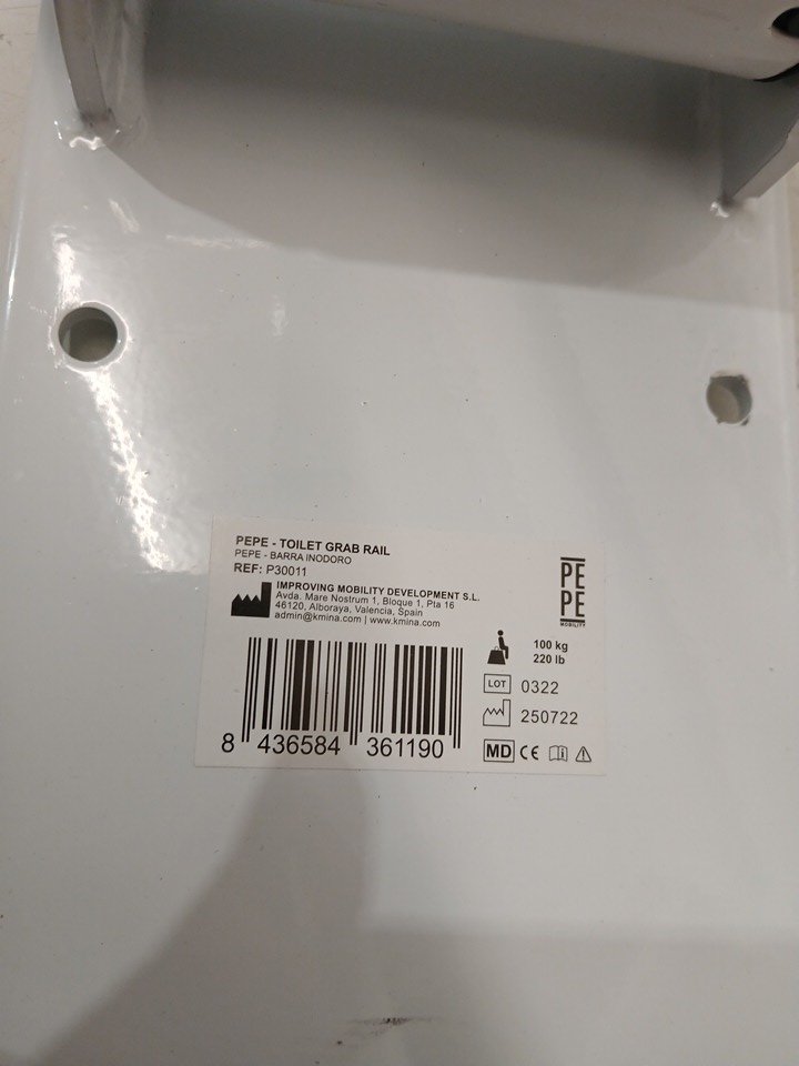 PEPE MOBILITY TOILET GRAB BAR - 11.8"x30" - WHITE (MODEL: P30011)