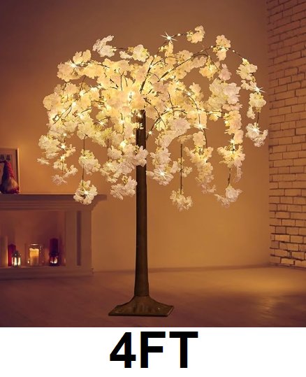 OUSHENG Lighted Cherry Blossom Tree - 4ft - Warm White