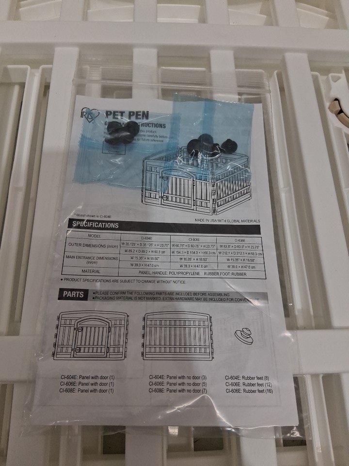 IRIS USA 4-PANEL PET PLAY PEN WITH GATE - 35.25" x 35.25" x 24" - WHITE (MODEL: CI-604E)