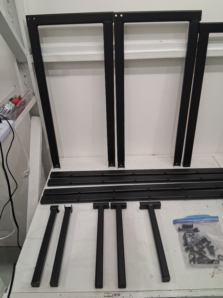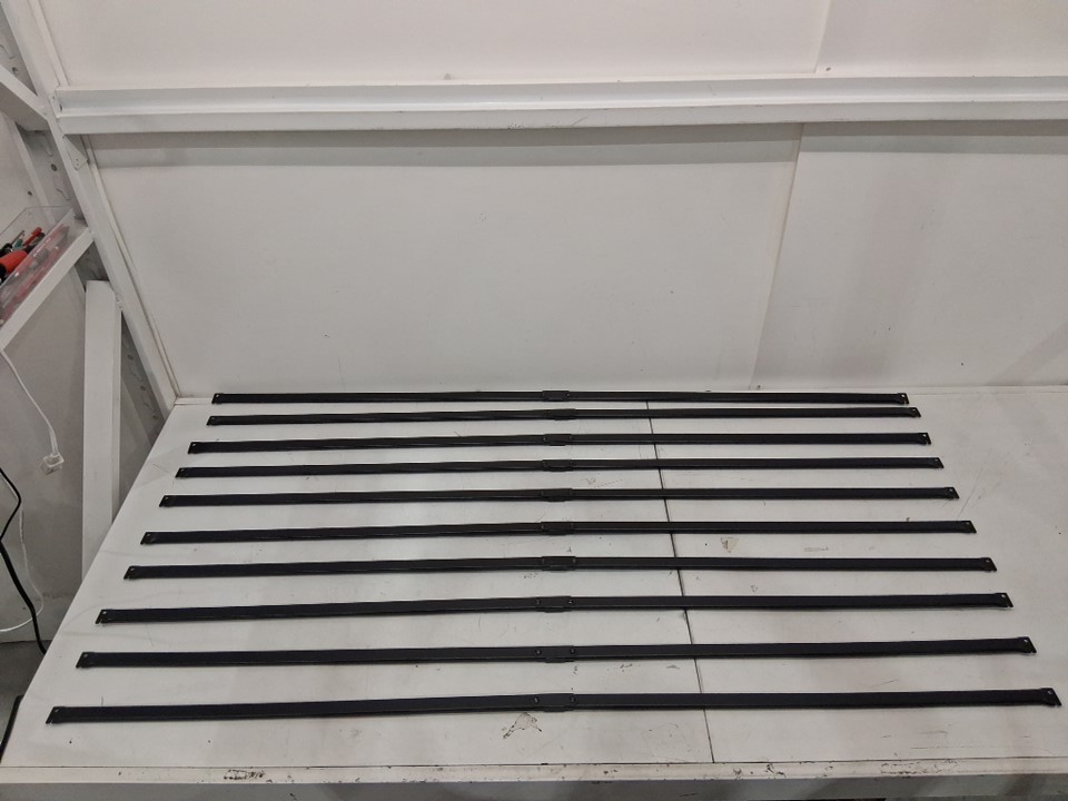 Adhesive strips on select bars previously used, indicating prior assembly. (See photos)
