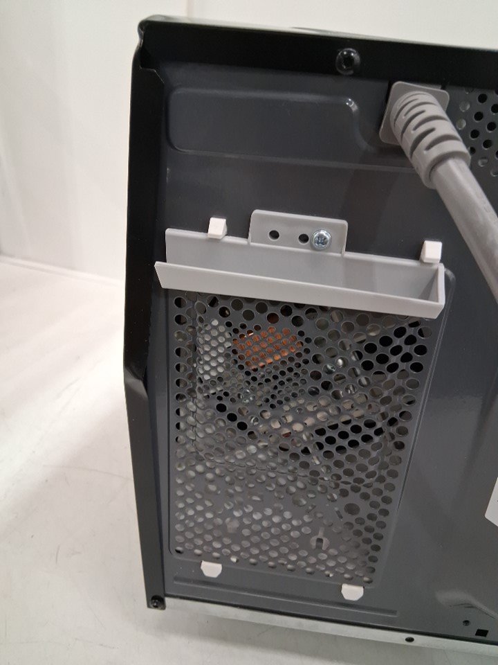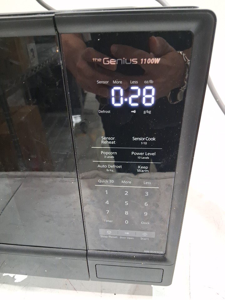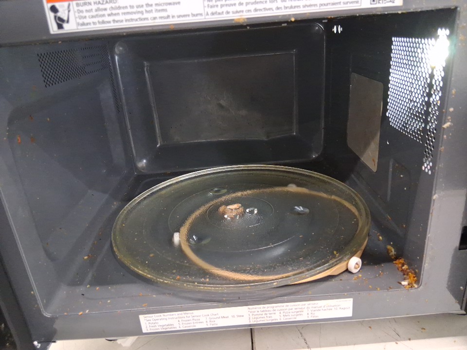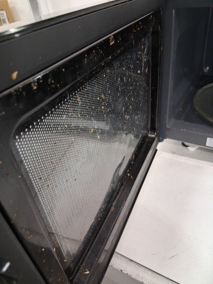 item tested for power. Item has marks and food residue from previous use. Also, it has dents on the back. (See photos)