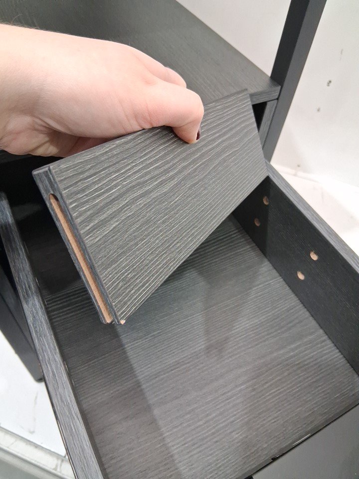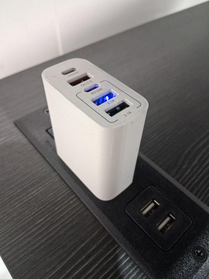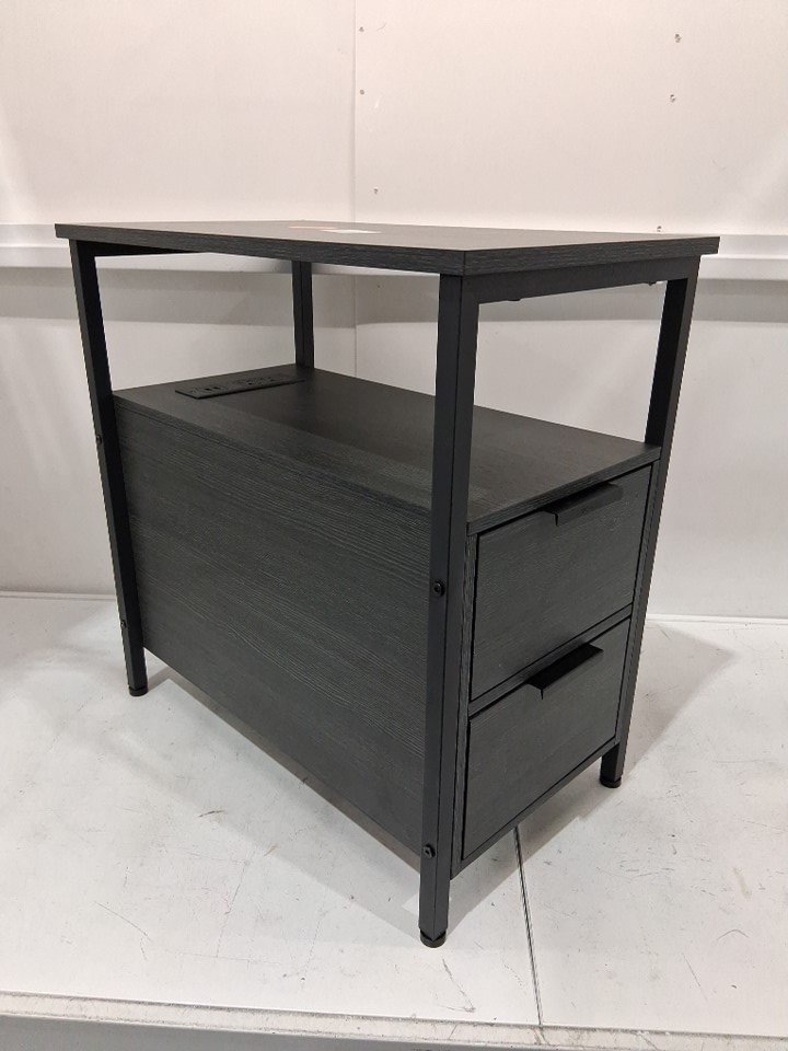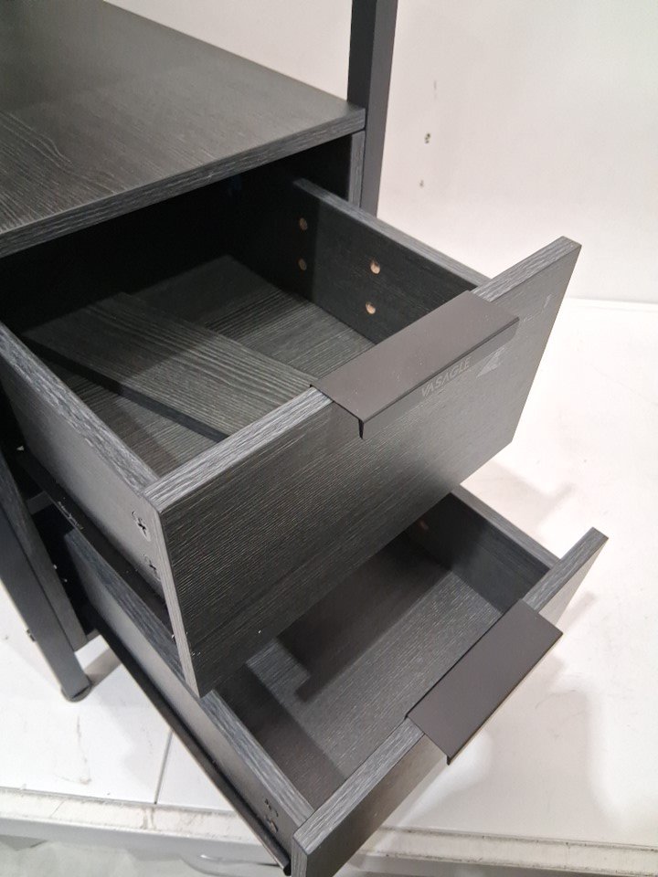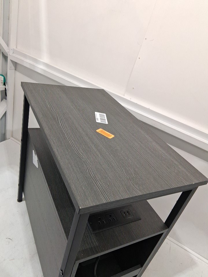 The item has some shipping stickers on it which should be easily removable with goo-gone, item power station tested for power, the item is supposed to have a little drawer divider in both drawers, we only have the one divider and you will need to diy assemble it yourself as the hardware is missing (pegs or screws or cut dowels)