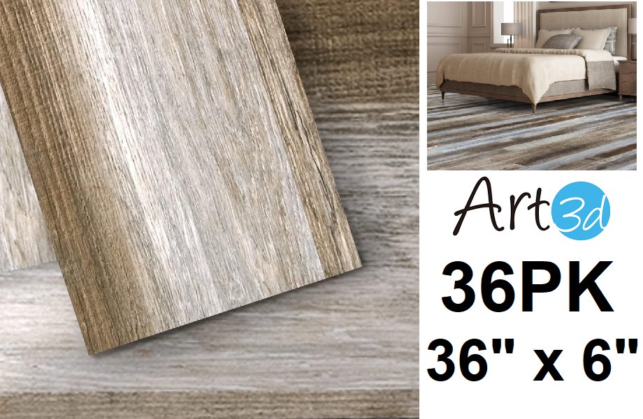 36pk Art3d Peel and Stick Vinyl wood plank flooring - 36" x 6" - old wood - (model: A43009)