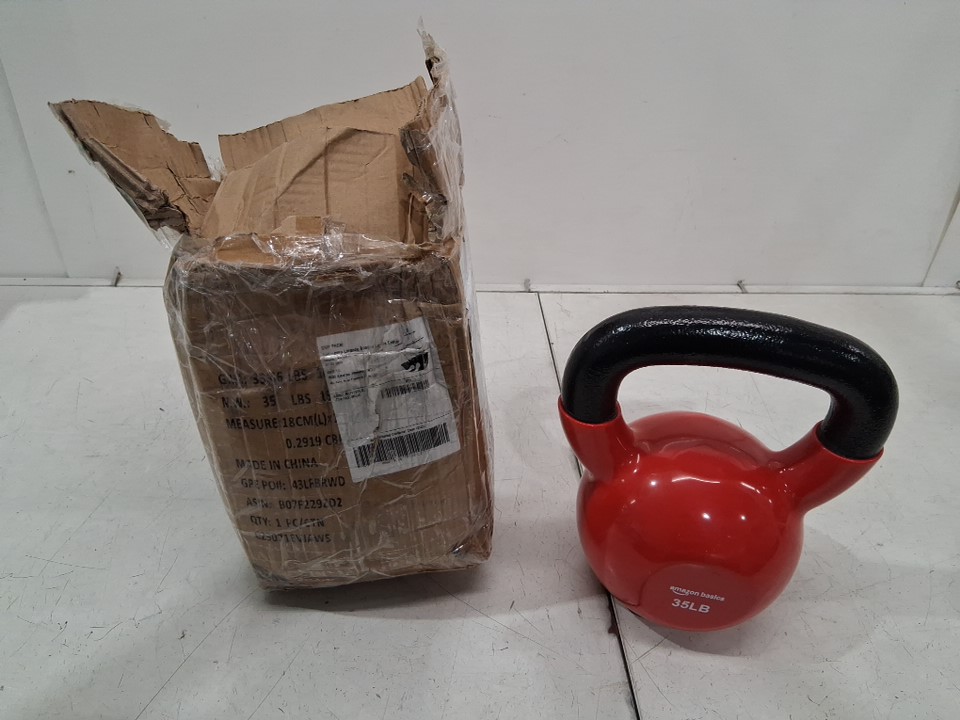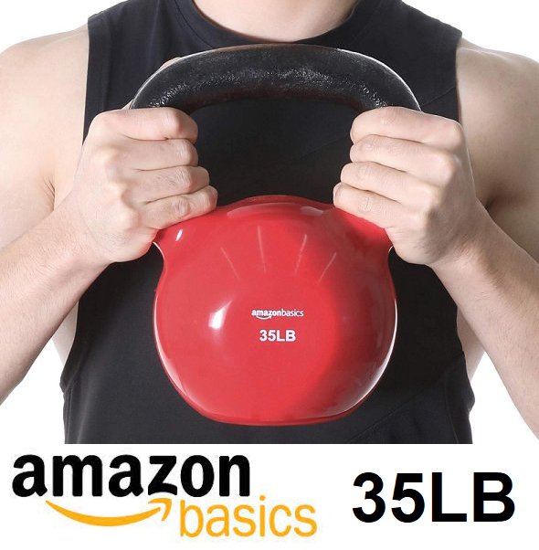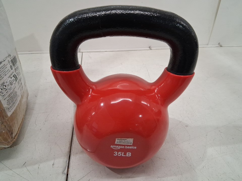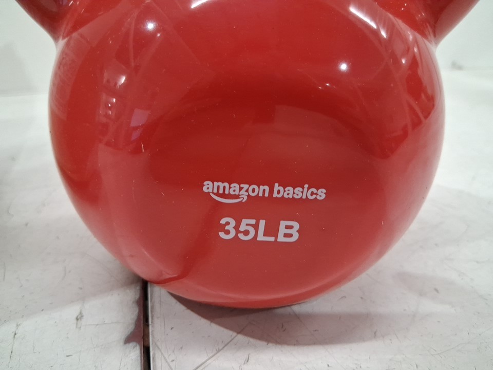 AMAZONBASICS 35LB VINYL COATED CAST IRON FITNESS KETTLEBELL - RED/black (model: ‎IR92007-35LB)