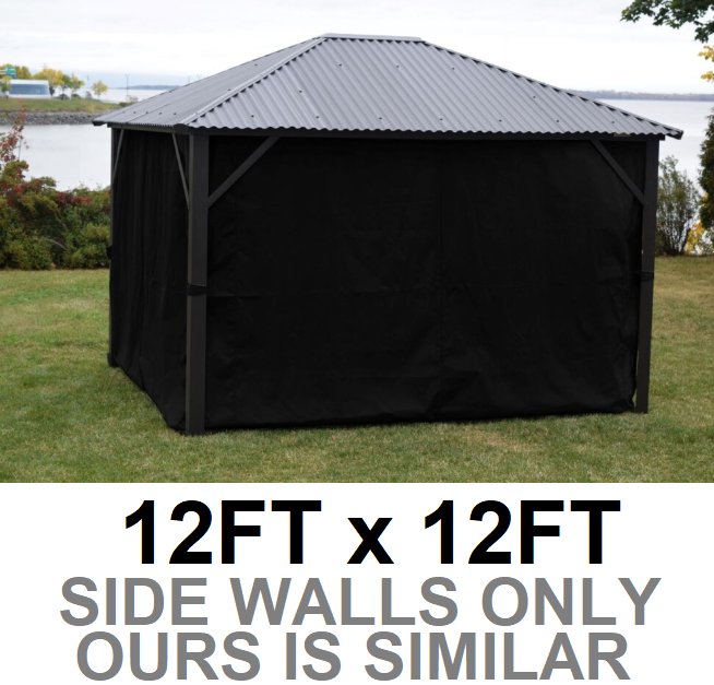 universal gazebo side wall replacement for outdoor canopies - 12ft x 12ft - black