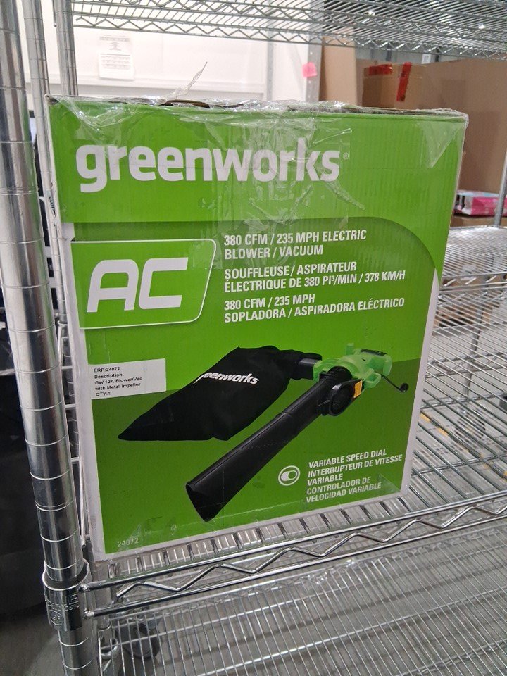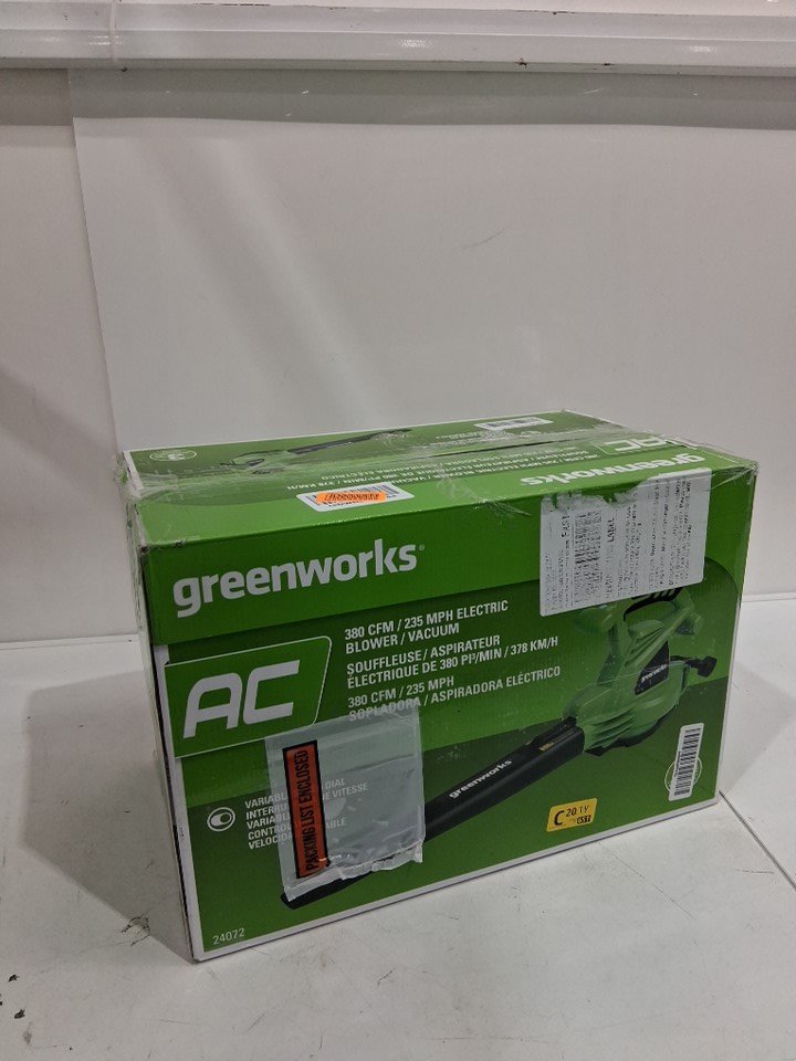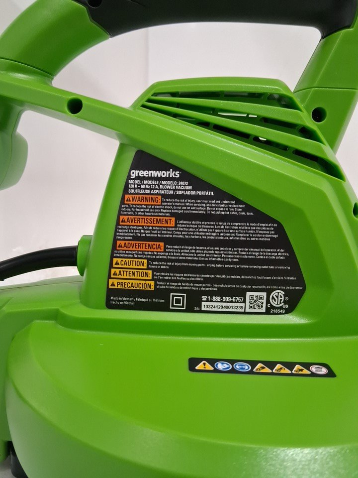 GREENWORKS VARIABLE SPEED CORDED BLOWER/Vacuum/Mulcher - 12 AMP - 235MPH - 380CFM - GREEN/BLACK (MODEL: 24072)