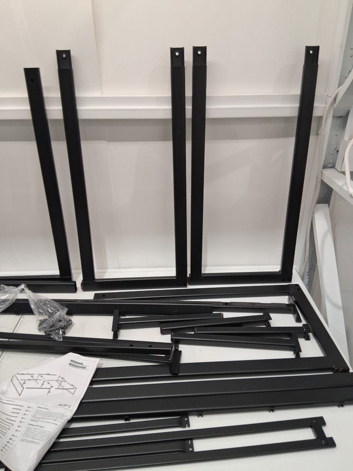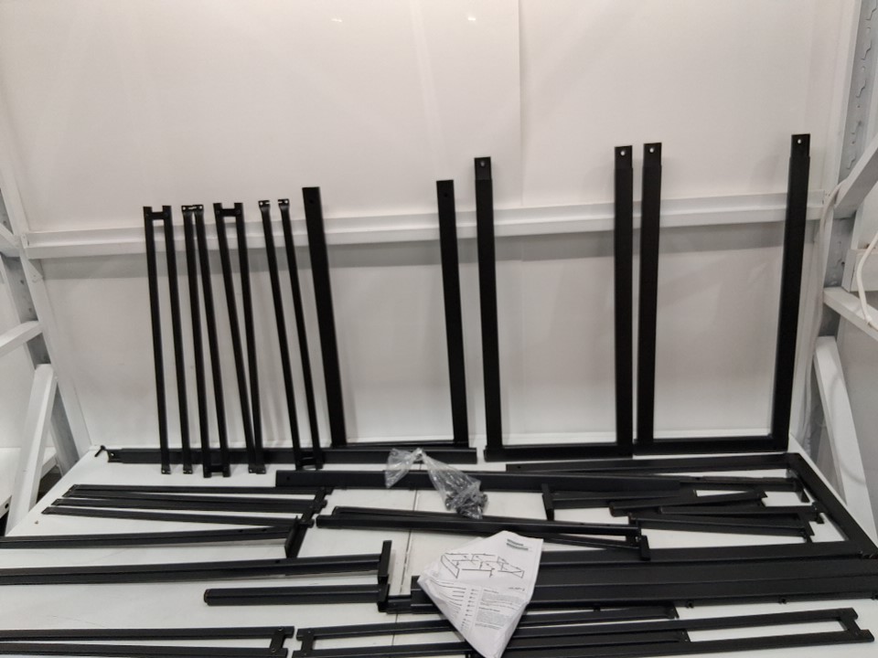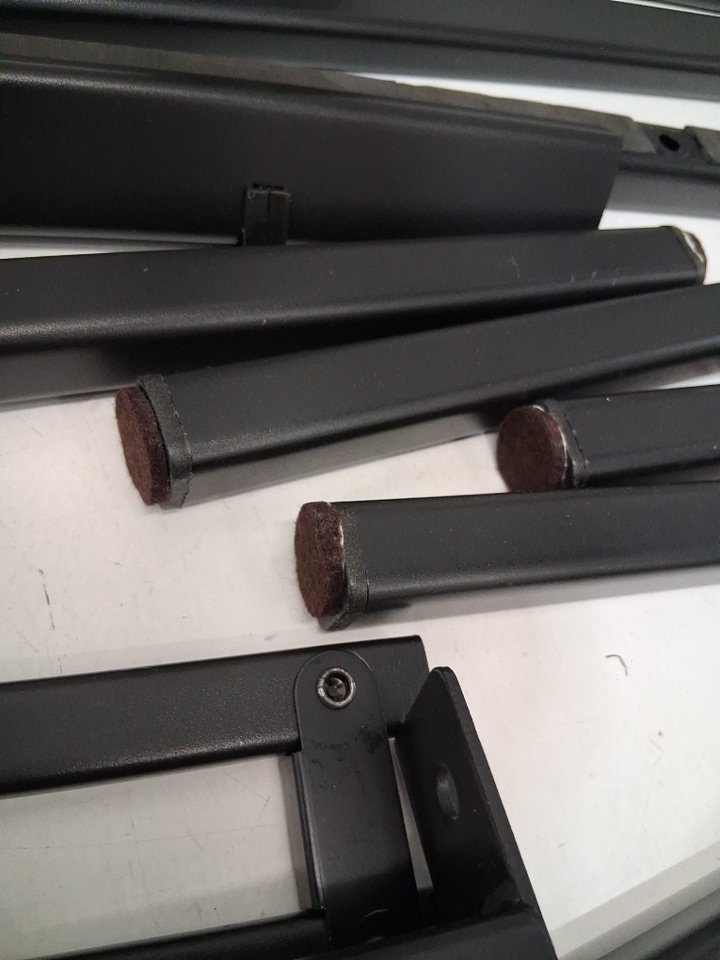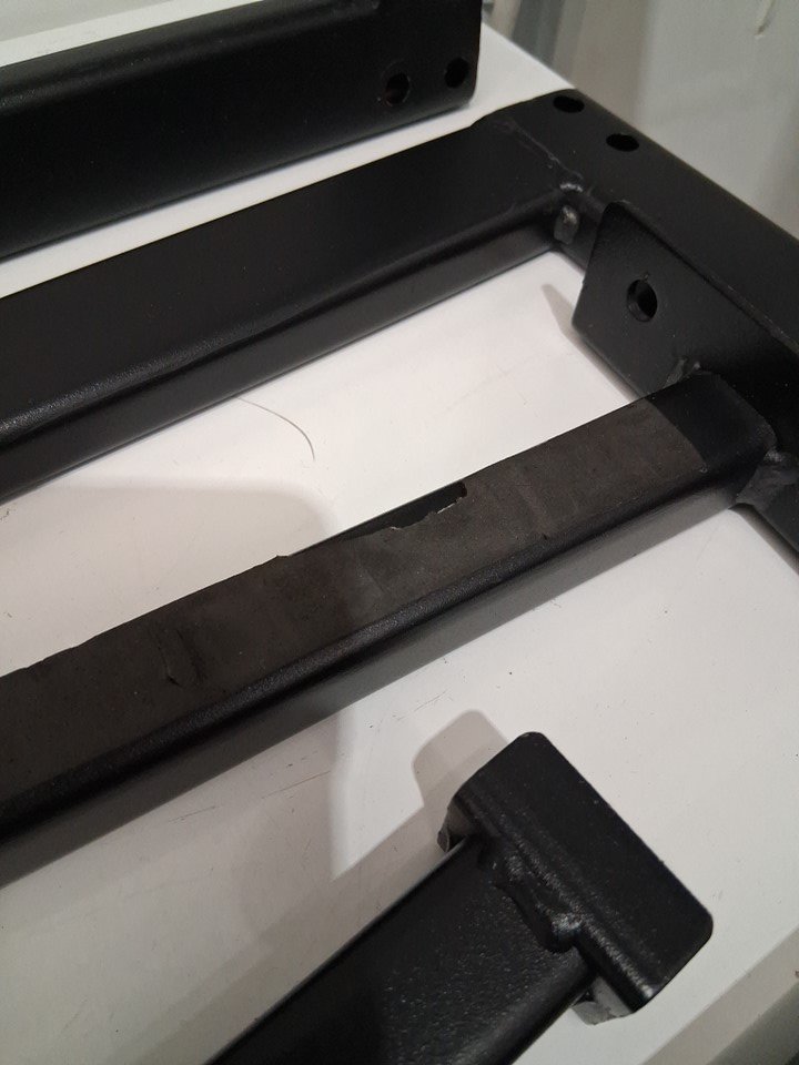 please note the product was discovered to be covered in light dust, scratches, and scuff marks. we also found some floor pad on the product, these can be removed, please see photos for more details