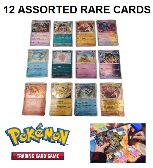 12 Assorted Pokemon TRADING Card GAME FOIL Rare and PROMO CARDS *SEE PHOTO*
