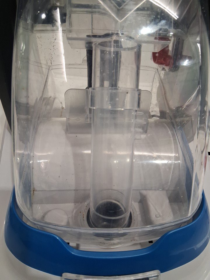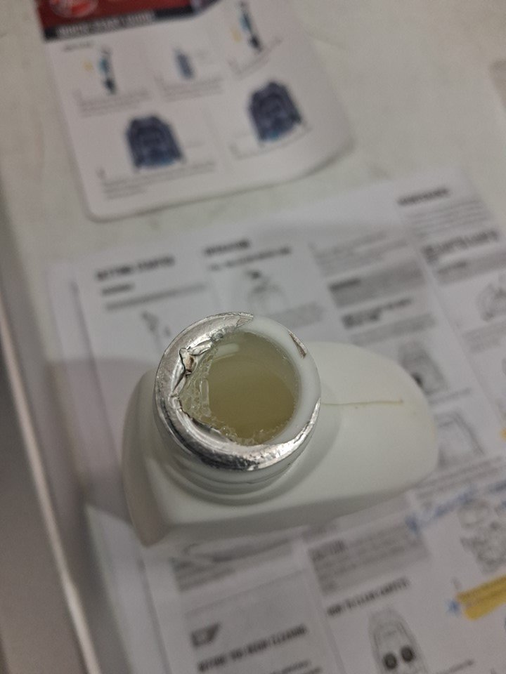 Signs of use, debris in tank, cleaner bottle used.
