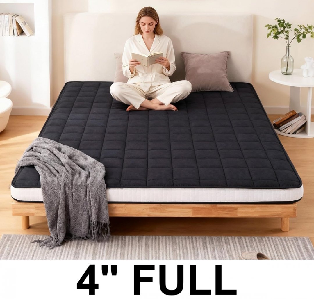 welnow japanese futon floor mattress/tatami mat with storage bag - 4" full - black