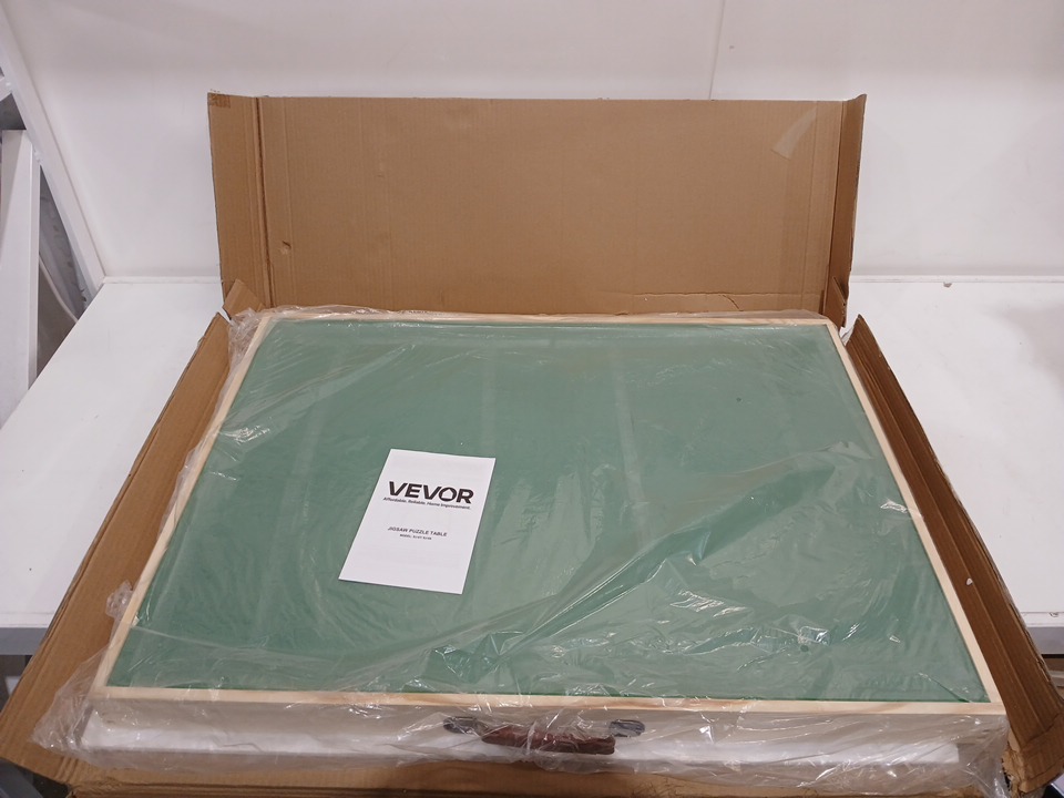 vevor 1500-piece puzzle table with folding legs, 4 drawers and cover - 32.7" x 24.6" - green/wood
