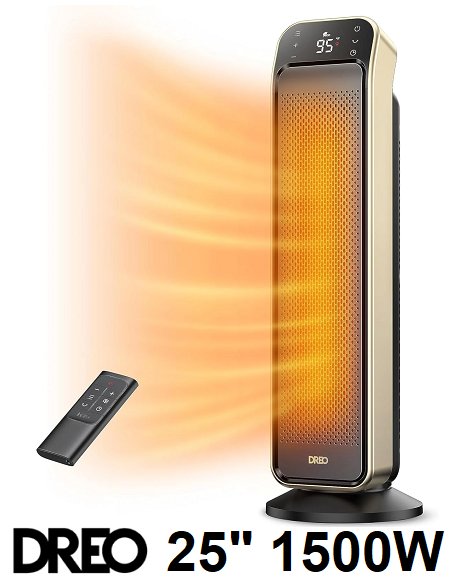 Dreo Space Portable Room Heater with Remote and Thermostat, 3 Modes, Overheating & Tip-Over Protection - 25" - black/gold - (model:dr-hsh013)