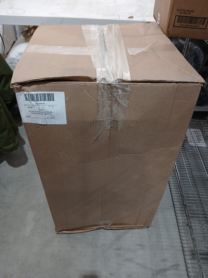 2PK UNITED SOLUTIONS WHEELED OUTDOOR GARBAGE TRASH CANS WITH LIDS - 32 GALLON - BLACK