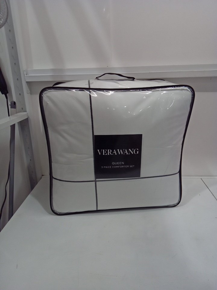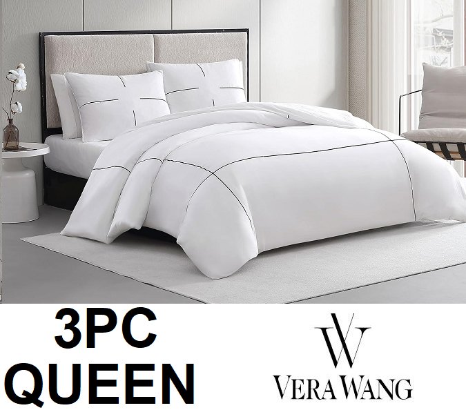 3pc Vera Wang Zig Zag Comforter Set - Queen - White
