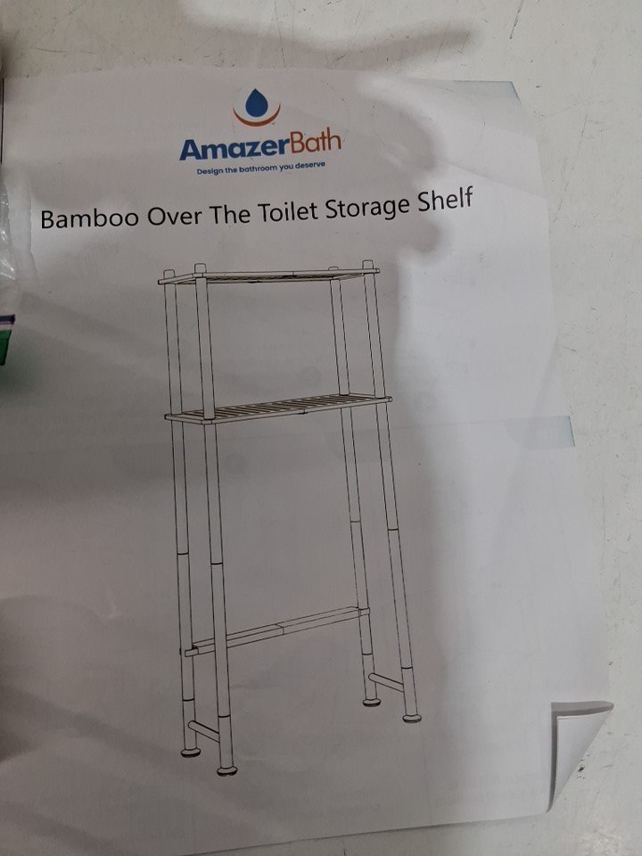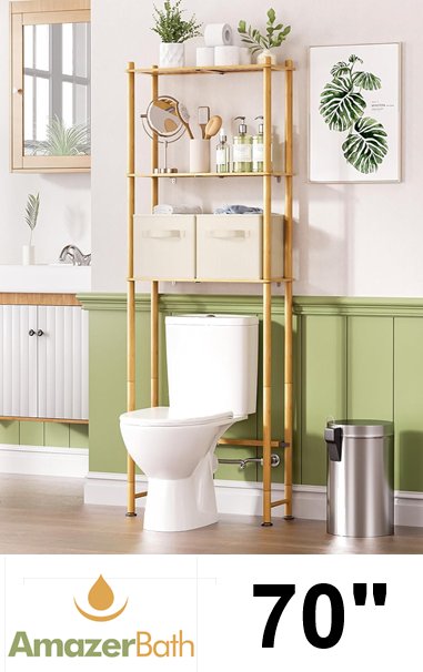 AmazerBath Over The Toilet Storage Bamboo Organizer Rack - 2 tier - 70" - bamboo brown