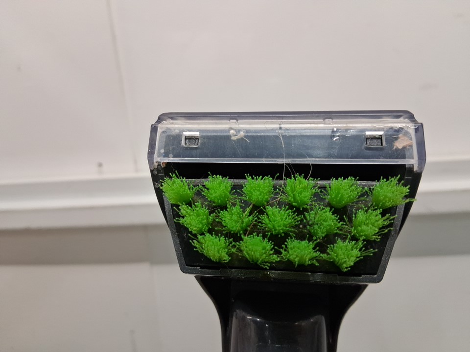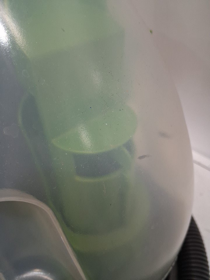 Missing cleaning solution, has some hair and residue in nozzle Aswell as the side compartments, please see photos.