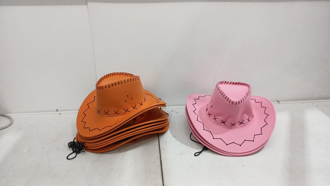 10 UNISEX ADULTS WESTERN MASQUERADE COWBOY HATS - OSFM - ORANGE/PINK