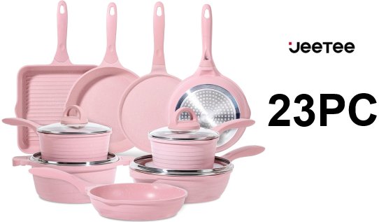 23PC JEETEE ceramic Nonstick Pots and Pans Set - Pink