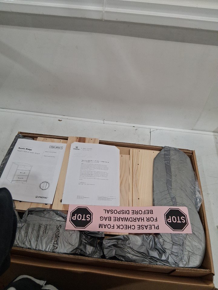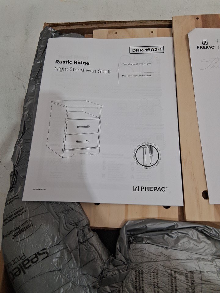 Prepac Rustic Ridge Farmhouse Nightstand Bedside Table - 16.25" x 18.75" x 24.5" - brown (model: BDNR-1602-1)