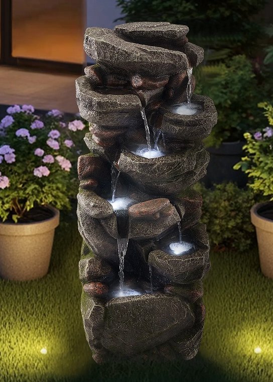 VEVOR OUTDOOR 39" 7-TIER CASCADING WATERFALL FOUNTAIN WITH LED LIGHTS (MODEL: dw258099)