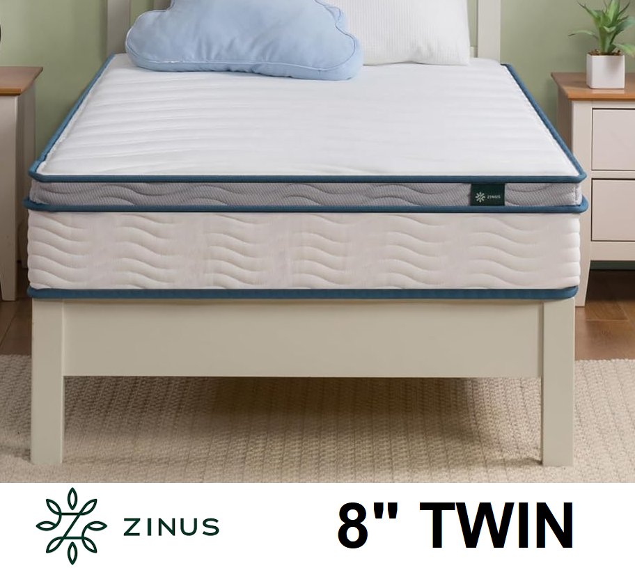 zinus Foam and Spring Hybrid Mattress - 8" - twin - white/blue (MODEL: zu-mssa1izi-08t)