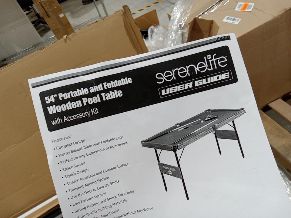 SereneLife Foldable Pool Table Billiard Table With Pool Balls, Cue Sticks, and Triangle - 30.7" x 54" - Blue (Model: SLPTB56)