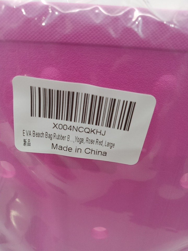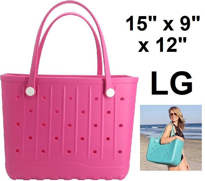 Rubber EVA Waterproof Beach Tote Bag - Large - 15" x 9" x 12" - Rose Red / Magenta