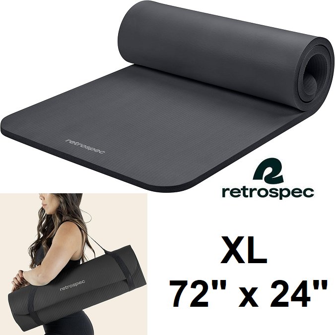 retrospec solana yoga mat - xl - 72" x 24" - graphite black