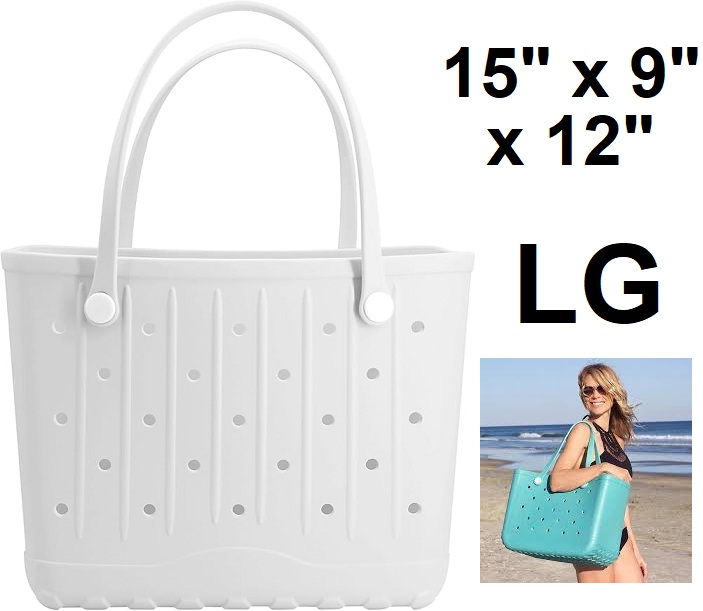 Rubber EVA Waterproof Beach Tote Bag - Large - 15" x 9" x 12" - White