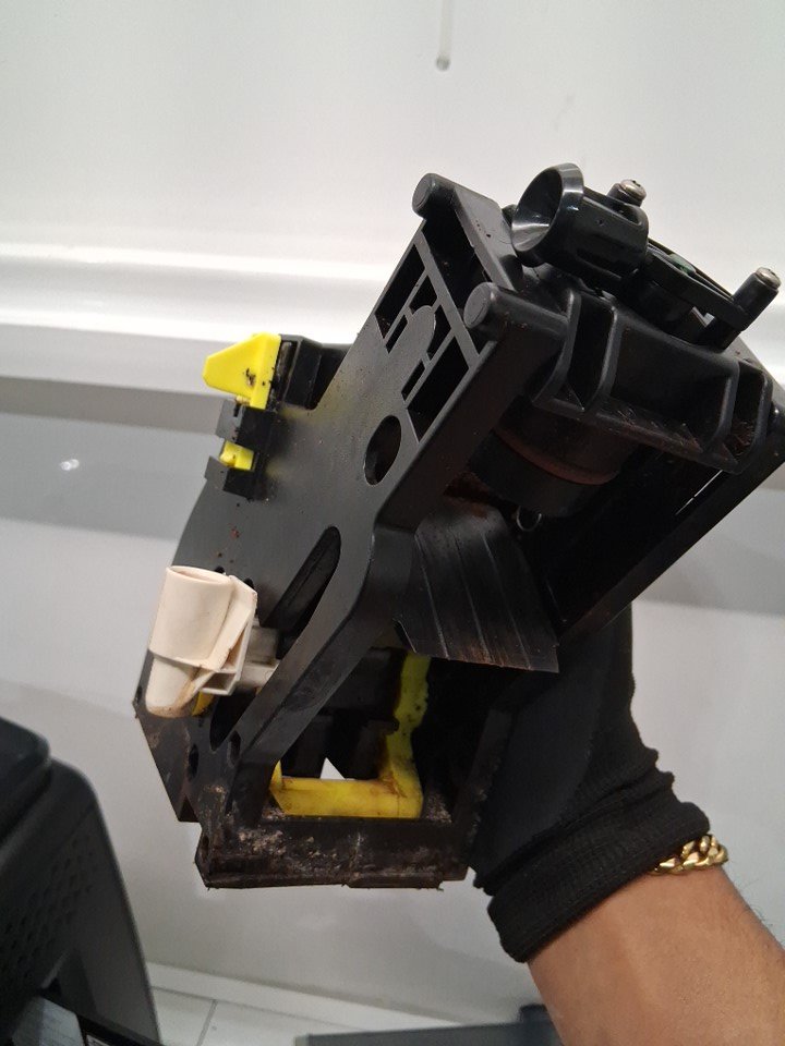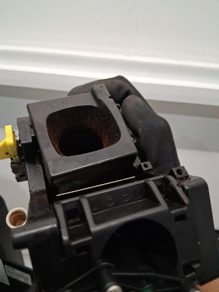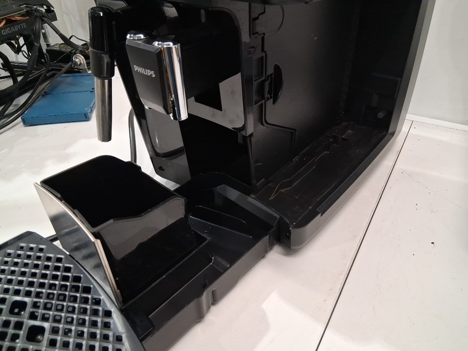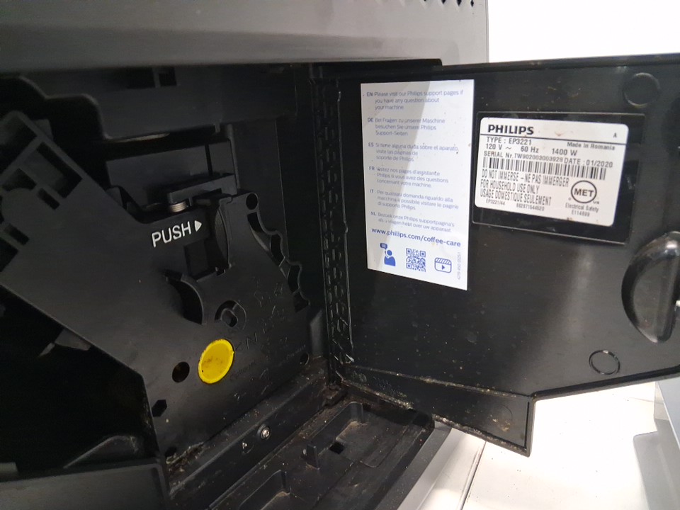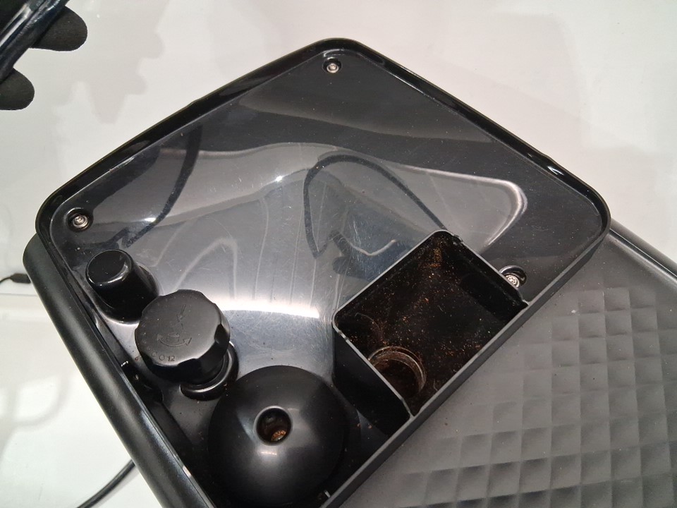 + Missing the smaller top lid + + The front panel has a silver cover instead of a black one + + Tested for basic power + + Item has residual coffee grounds +