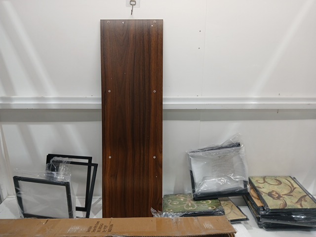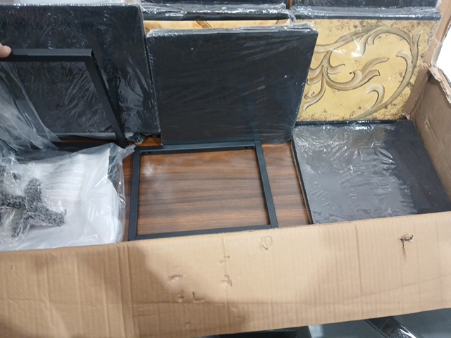 There were pieces outside of the box upon arrival to our facility. There is no hardware, and we cannot guarantee all pieces are present due to there not being a manual. Selling as is.