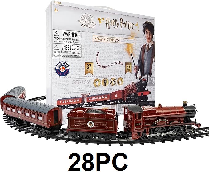28pc lionel wizarding world of harry potter hogwarts express battery operated train - 65" x 41" oval track - red/black (model: ‎711981)