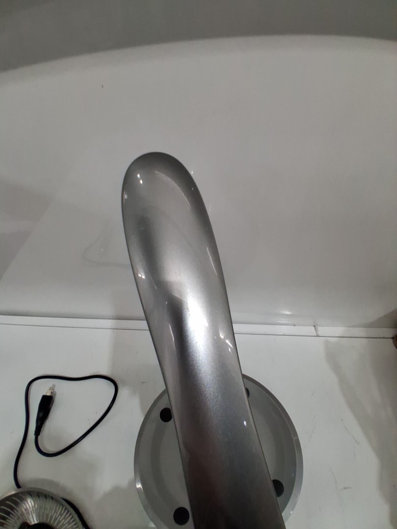 no signs of previous use. tested for power. there is a small mark on top side of handle, likely caused during shipping.