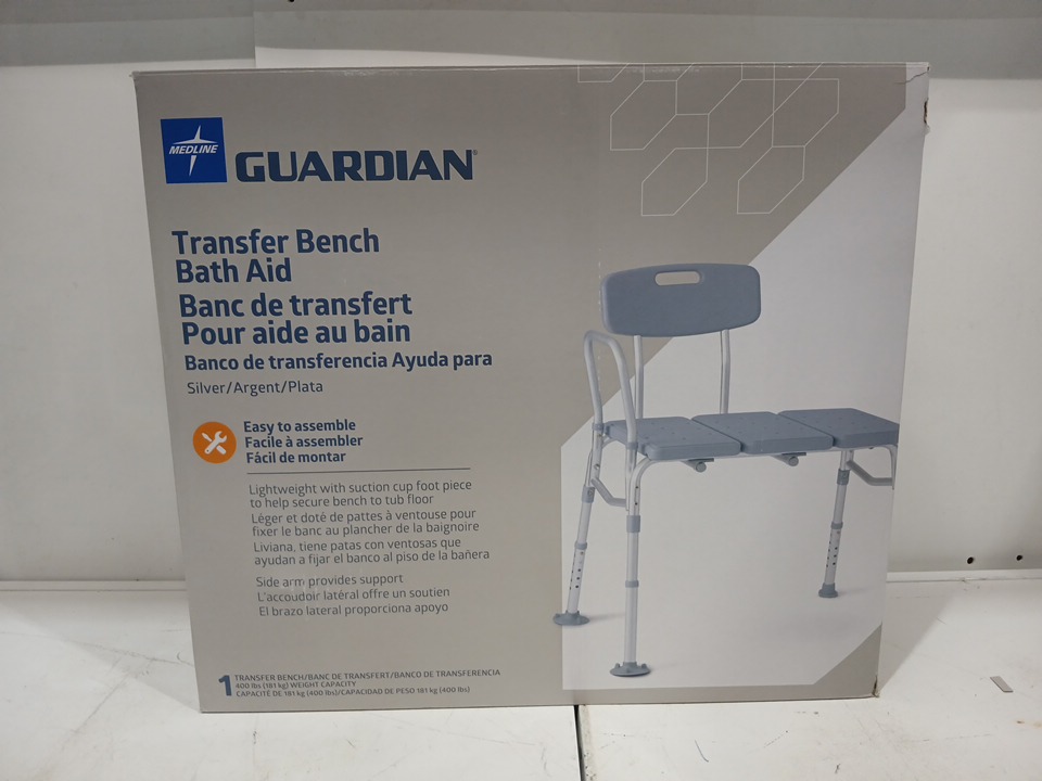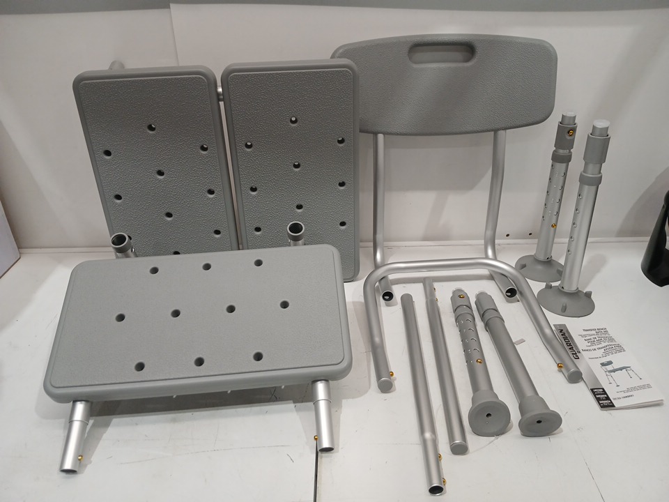 MEDLINE GUARDIAN bathtub TRANSFER BENCH WITH BACK support & suction feet- max 400lbs- GREY (MODEL: G3-100KBX1)