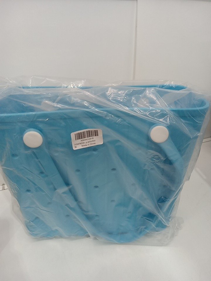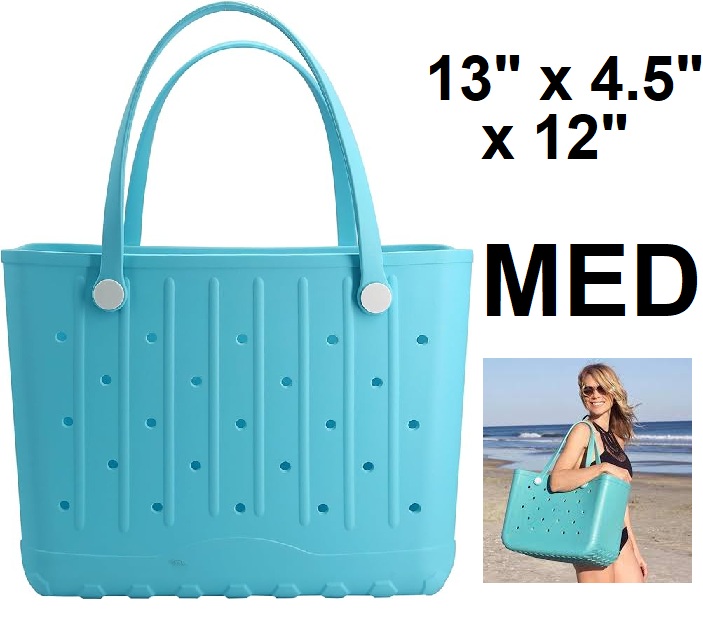 Rubber EVA Waterproof Beach Tote Bag - Medium - 13" x 4.5" x 12" - light blue