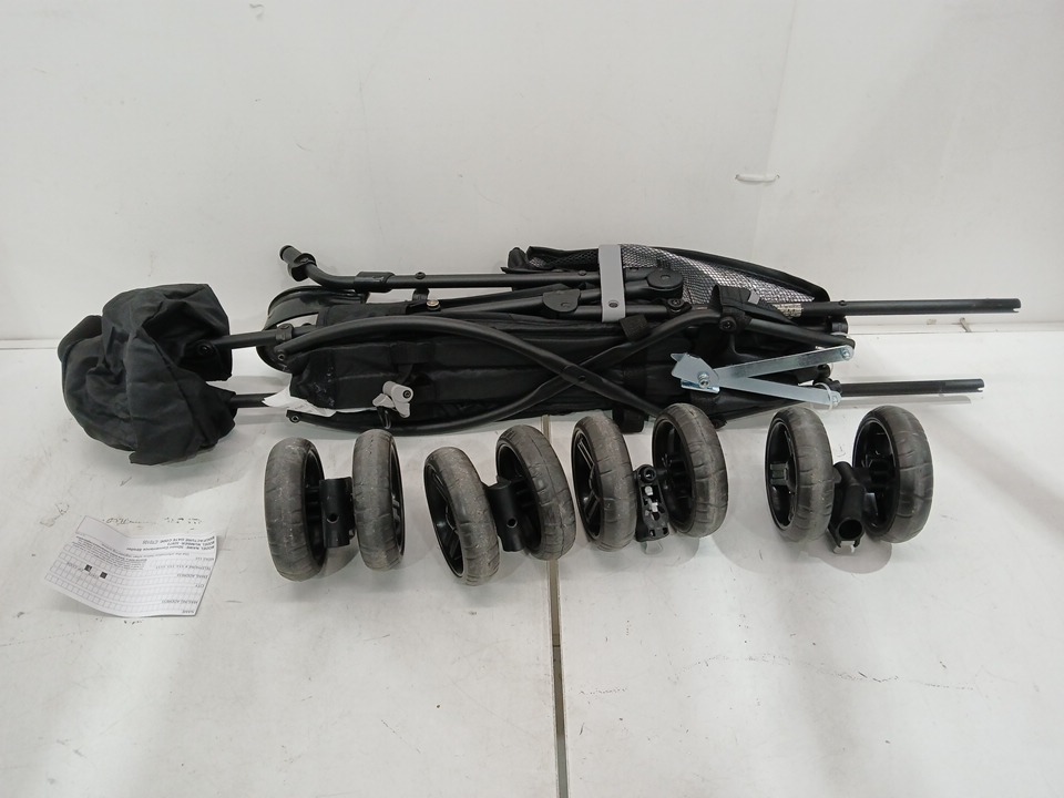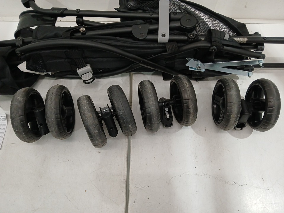 please note there is dirt/debris on the stroller wheels showing signs of light usage, see photos